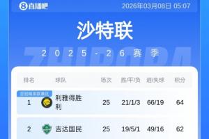 随着相关信息不断披露,沙特联积分榜:利雅得胜利绝杀2分领跑!吉达国民第二、新月第三的情况逐渐清晰。