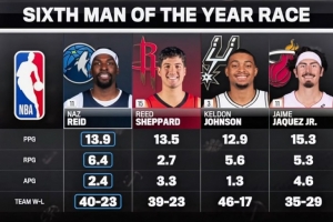 围绕转播方列本赛季最佳第六人四大候选:里德 谢泼德 凯尔登 小海梅,近期陆续出现了一些新的动态,引发了不少讨论。