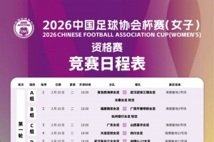 根据2026年全国成年女足竞赛工作计划,中国足球协会杯赛(女子)(以下简称“女子足协杯”)资格赛阶段比赛将于2026年3月10日至18进行。