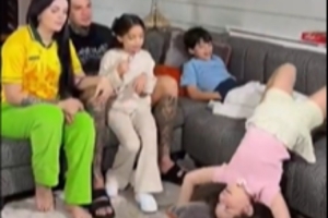体育资讯3月17日讯 ESPN晒出视频,费内巴切门将埃德松一家通过电视收看安切洛蒂公布巴西队大名单。