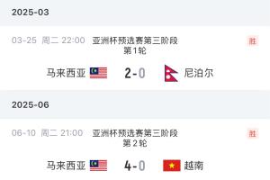2-马来西亚在2025年3月25日的亚洲杯预选赛第三阶段第一轮对阵尼泊尔的比赛被判负,马来西亚这场比赛应被视为0-3落败。