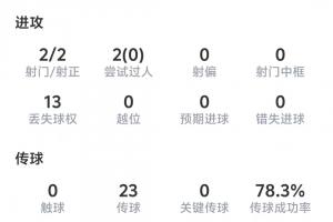 2次过人成功0次