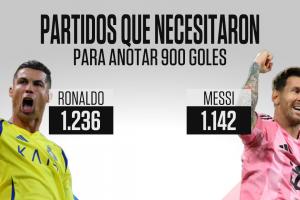 ESPN晒统计图,梅西1142场解锁900球,C罗1236场解锁900球。梅西比C罗少用94场达成。
