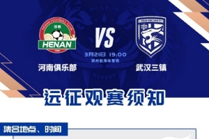 3月21日,武汉三镇在中超第3轮客场对河南,本次客场远征观赛须知现阶段能够确认的信息主要集中在以上内容。