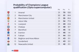 现阶段英超前四概率:曼联85.6%,维拉77.2%,利物浦23.6%,切尔西9.7%的相关动态如上,后续发展值得持续关注。