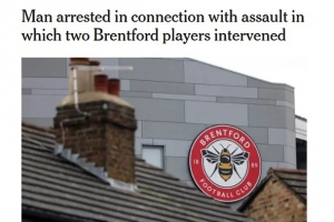 TA:一名男子涉嫌袭击他人,两名布伦特福德球员曾试图介入制止的整体进展暂时整理到这里,后续仍有变化空间。