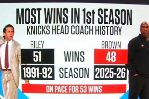 随着相关信息不断披露,尼克斯主帅首个赛季胜场纪录:莱利51场 面包至今48场&有望破纪录的情况逐渐清晰。