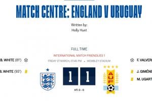 体育资讯03月28日讯 友谊赛英格兰1-1战平乌拉圭,乌加特出现2张黄牌没被罚下争议,但很可能是转播失误。