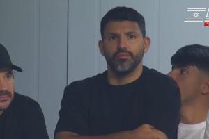 半场时,镜头给到看台上,阿圭罗现场观战。