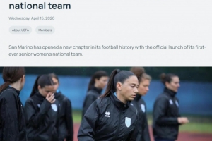 体育资讯4月16日讯 欧足联官网消息,圣马力诺成立首支成年女足国家队,开启足球新篇章。