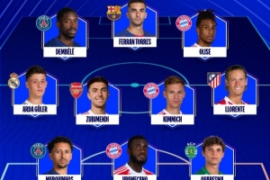 欧冠官方本周最佳阵:登贝莱、奥利塞、费兰领衔锋钱,居莱尔在列