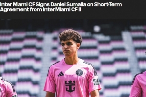 体育资讯4月19日讯 迈阿密国际官方宣布从二队征召17岁小将丹尼尔·苏马拉(Daniel Sumalla),这名年轻后卫可以随队参加接下来的两场客场比赛,对手分别为科罗拉多急流以及皇家盐湖城。