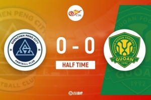 伤停补时2分钟。上半场比赛结束,深圳新鹏城0-0北京国安。