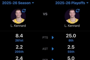 肯纳德本赛季常规赛场均8.4分2.3板2.2助 季后赛场均25分5板2.5助的整体进展暂时整理到这里,后续仍有变化空间。