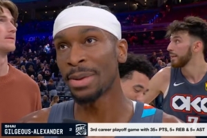体育资讯4月23日讯 今日NBA西部季后赛首轮G2,雷霆120-107拿下太阳,大比分2-0领先。赛后亚历山大接受了媒体采访,以下为采访全文。