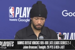 体育资讯4月24日讯 尼克斯客场108-109再负老鹰,大比分1-2落后。赛后布伦森接受了媒体采访,以下为采访全文。