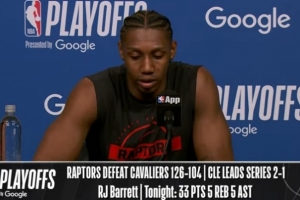 体育资讯4月24日讯 季后赛G3,猛龙主场126-104大胜骑士,将大比分扳为1-2。赛后巴雷特接受了采访,以下为采访全文。