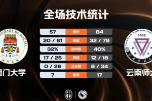 末节比赛,澳门大学的进攻表现终于有所回暖,她们的单节得分也是首次达到20分,不过云南师大也并没有给她们迫近比分的机会,分差一直保持在20分以上,最终云南师大84-57大胜澳门大学。
