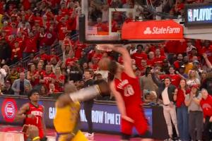 GIF-老詹分球失误~!!申京点抢反击暴扣~!!领先6分
