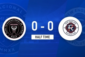 伤停补时2分钟。上半场比赛结束,迈阿密国际0-0新英格兰革命。
