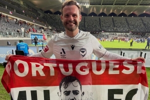 B费本赛季表现出色,有望竞争英超年度最佳球员奖项,马塔在球场上举起为B费加油的旗帜,上面写有“葡萄牙人、曼联、太出色了”字样,以及B费的头像。