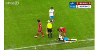 阮奇龙争抢球权时飞踹到雷森德腹部,主裁判向阮奇龙出示黄牌
