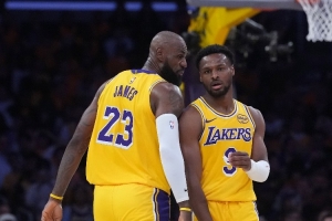 上阵父子兵!詹姆斯和布朗尼今天都只进了两个球