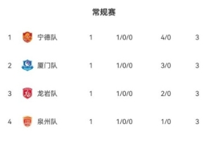 积分榜上,宁德队以净胜球优势暂时排名第一,厦门队、龙岩队分列二、三位。
