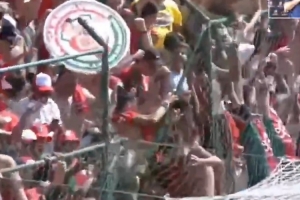 进球后,这位前锋冲向葡萄牙人球迷组织所在的看台围栏,他爬上围栏庆祝,球迷也随之跟上。由于不堪众人重量,围栏最终倒塌。