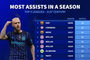 本世纪单赛季助攻排名:哈维24助居首,本赛季迪马尔科18助的整体进展暂时整理到这里,后续仍有变化空间。