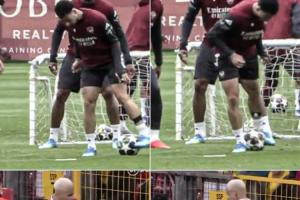体育资讯04月29日讯 马丁内利在训练中做出安东尼同款转圈动作。