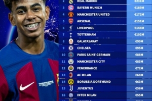 关于俱乐部2025年球衣销售收入榜:巴萨、皇马均超两亿欧,足坛唯二,当前阶段的情况已基本明朗。