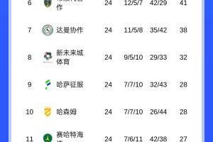 利雅得胜利以61分排名榜首,吉达国民59分第二,利雅得新月58分第三。