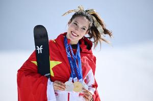 谷爱凌说道:“通过我,我希望更多人能去认识自由式滑雪,去体验体验。还是享受过程,我觉得享受过程是最重要的,无论结果是什么样子的,自己做最后的准备去努力,那么是永远不会后悔的。”