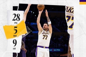 赛后,湖人官方发布东契奇本场数据海报,并写道:“卢卡的轻量工作。”