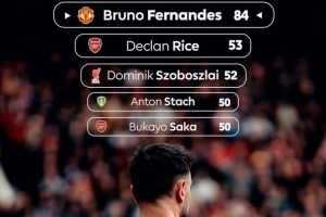 随着相关信息不断披露,英超官方晒本赛季创造机会榜:B费84次遥遥领先,赖斯53次第二的情况逐渐清晰。