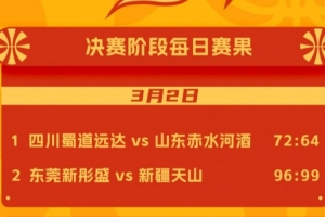 2026年中国篮协女篮俱乐部杯3月2日赛果来啦。