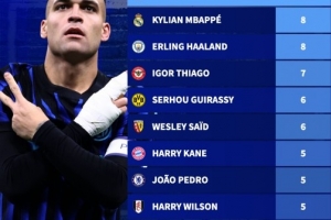 随着相关信息不断披露,本赛季5大联赛制胜球排行:劳塔罗9球居首,姆巴佩、哈兰德8球的情况逐渐清晰。